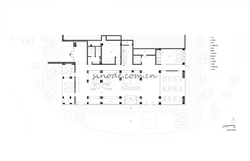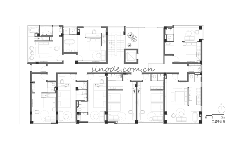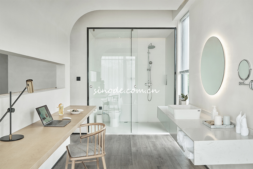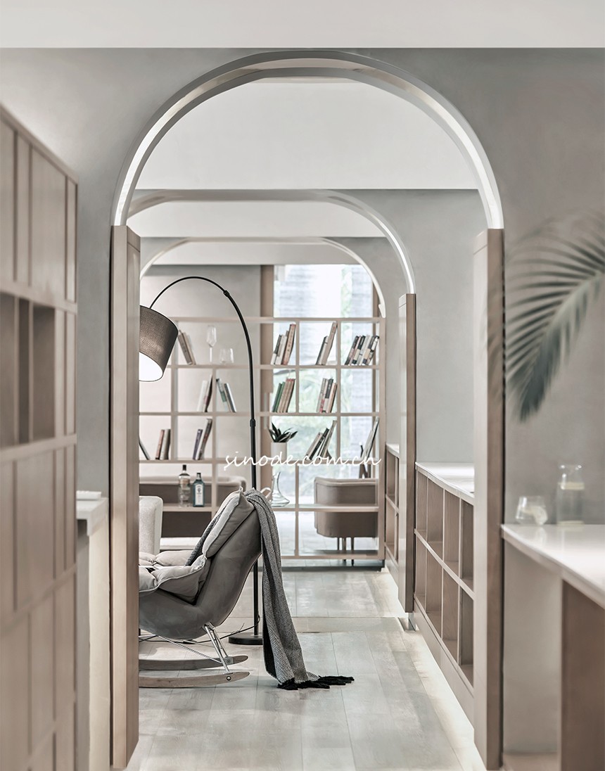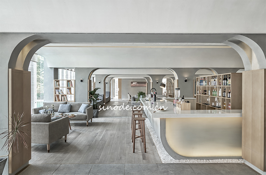 海口隐墅名宿“菩墅”位于海南省海口市,紧邻美兰国际机场,原先为一栋私人别墅。作为改造项目,原有的建筑格局已不适合新的空间使用要求,我们在原有的建筑结构框架限定中,重新规划功能空间、流线以及节奏,用来满足新的使用需求。 半地下室作为公共活动空间,原本错综复杂的结构柱网及管线让本身并不高的空间显得更加压抑,我们试图找到一种简单的方式,解决高度问题的同时让原本零碎的空间得到有效整合。 墙体被合理的拆除或保留,打开空间的同时增加半透的隔断来对空间格局进行分割,通过简单朴素的设计手法拉近室内外的距离,模糊室内外关系间的界限。 弧形拱元素的置入,让原本生硬的空间变得柔和,纵向给开放型布局带来仪式感,横向给不同的功能形成各自的区域感。 |