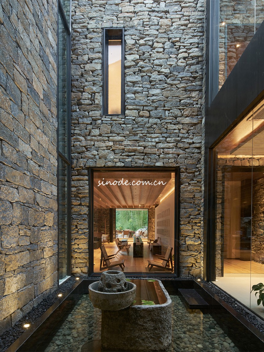 湖北石屋民宿宜昌石屋为设计提供了原始参考,设计力图呈现这种原生的美感,建筑需要把时间的连续性充分表达出来。因石材外观鲜明的地域特点,石材的使用不仅可延续乡村风貌,还可将时间记忆在新建筑中得以传承。二期石屋由多栋建筑构成看似无序的空间序列,延续和递进一期石屋的形态关系,根据地势散落在山坡上,与一期两栋石屋不同,没有依照统一的朝向,而是依据乡村建房因势而建的特征,呈现无序中的有序感。 |