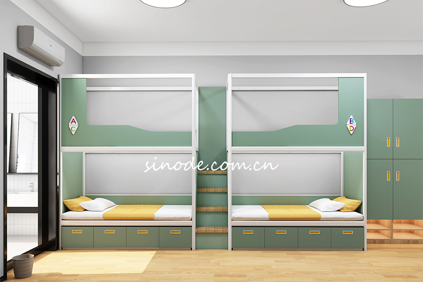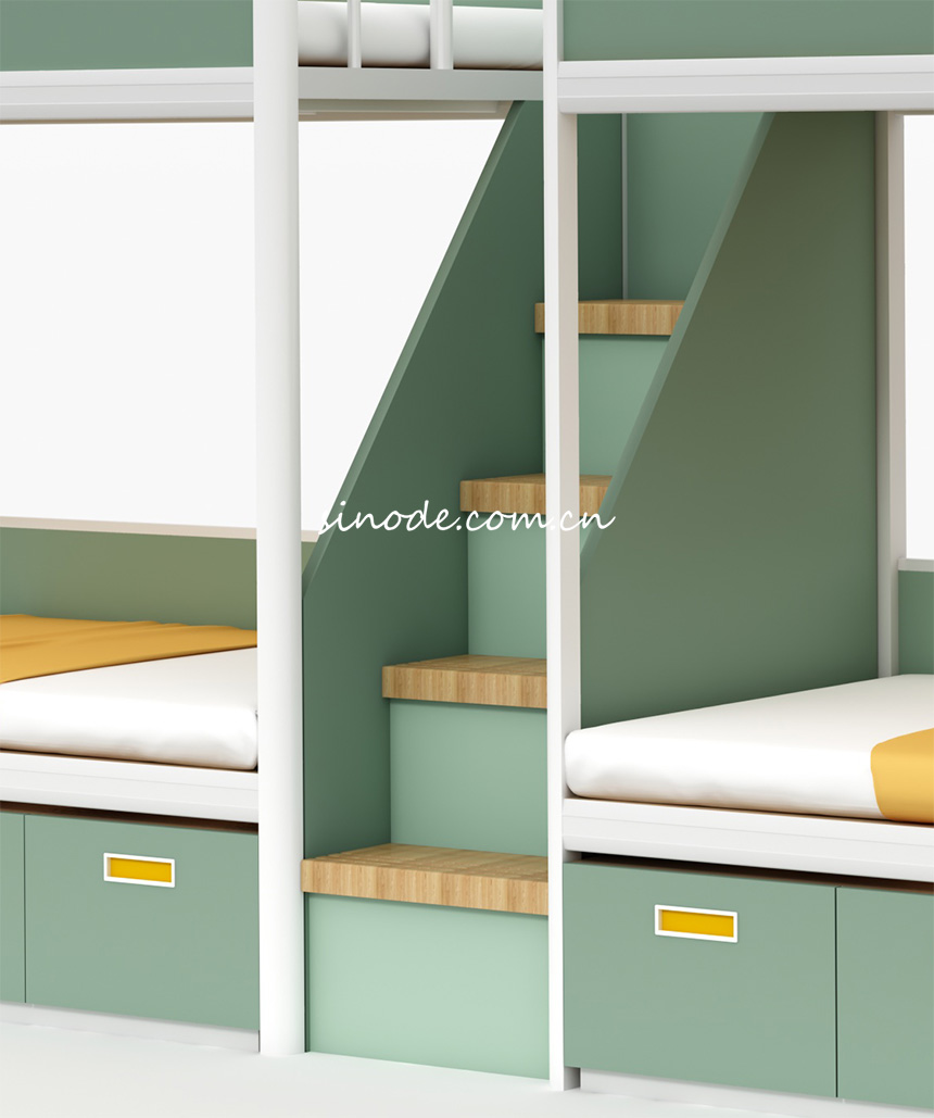 钢制连体上下床基材:采用优质冷轧钢板经过切割压制焊接而成; 功能特点:①具有一定的金属光泽,材料平整,厚度均匀;②具有良好的冲击韧性和弯曲韧性,能够承受较大的力而不易断裂;③具有优异的强度和耐腐蚀性能,有较高回收价值,更环保; |