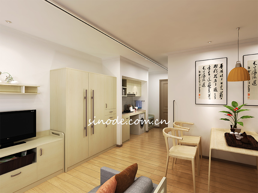 现代简约康养公寓基材:采用E0级实木颗粒板/实木多层板贴三聚氰胺饰面;优质绿色环保产品,甲醛含量≤0.5mg/L,密度≥760kg/m3,静曲张度≥51.2Mpa,吸水膨胀率≤8.1%; 封边:采用2mm厚PVC胶边,进口热熔胶; 配件:优质三合一、门铰、导轨等五金配件; 功能特点:①可按色板选择不同的色彩、纹路(直纹和山纹);②按不同的用途选择12mm、16mm、18mm、25mm等厚度;③具有防水、防烫、防污、防酸、防碱特点; |