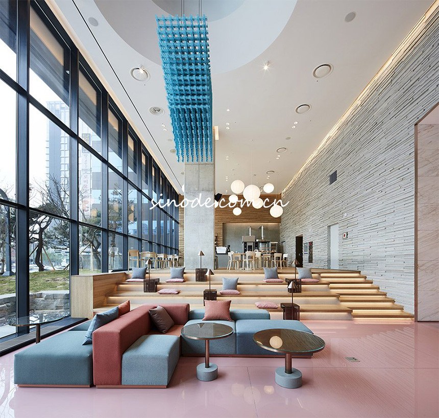 RYSE酒店公区基材:采用天然石材/黄铜等材料; 功能特点:①石材质地坚硬,具有很好的防刮伤性和耐磨性;②石材经过打磨后顺滑光亮,不易藏污纳垢;③黄铜抗拉强度高,具有一定的强度和韧性,具有良好的可塑性; |