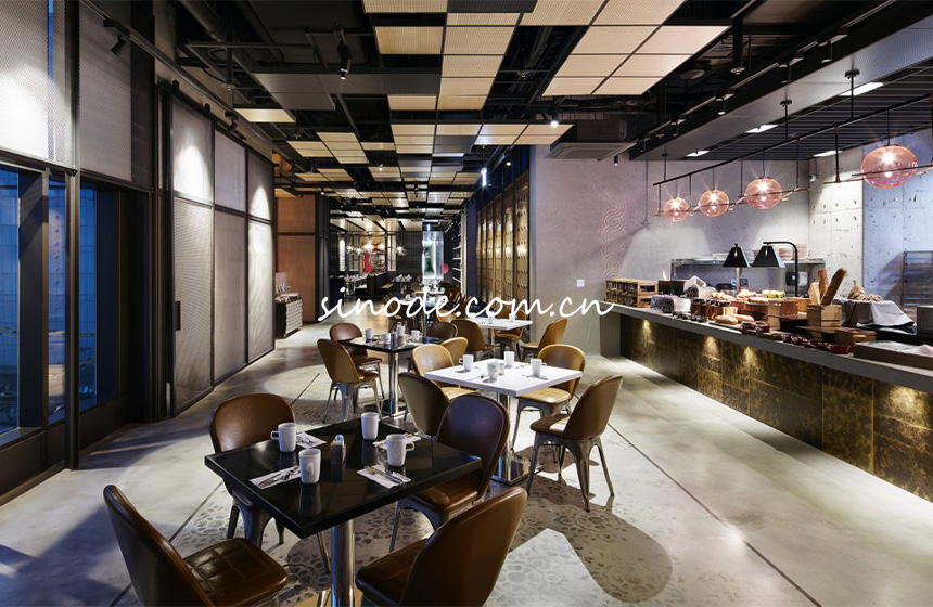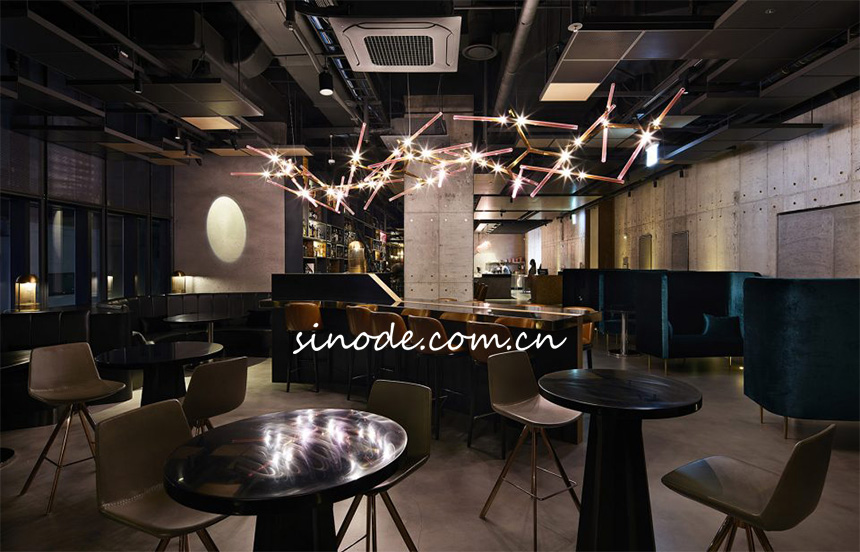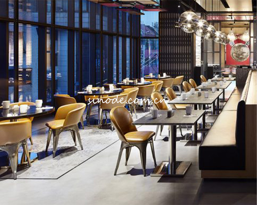 RYSE酒店餐厅基材:采用天然石材/黄铜/胡桃木等材料; 功能特点:①石材质地坚硬,具有很好的防刮伤性和耐磨性;②黄铜抗拉强度高,具有一定的强度和韧性,具有良好的可塑性;③实木质地坚硬,纹理清晰,能够提升空间品质感; |