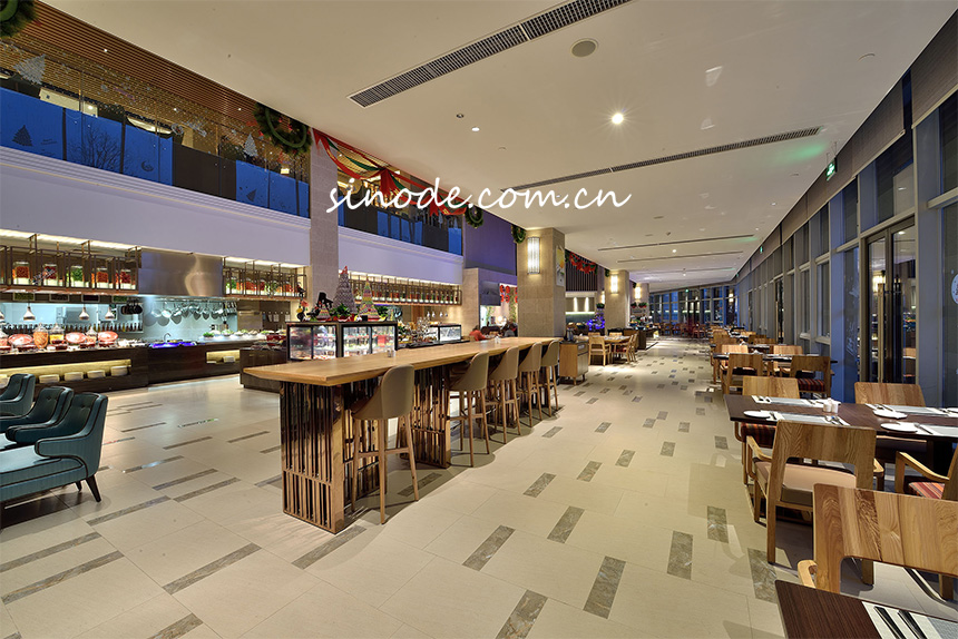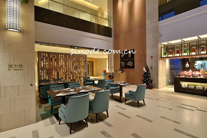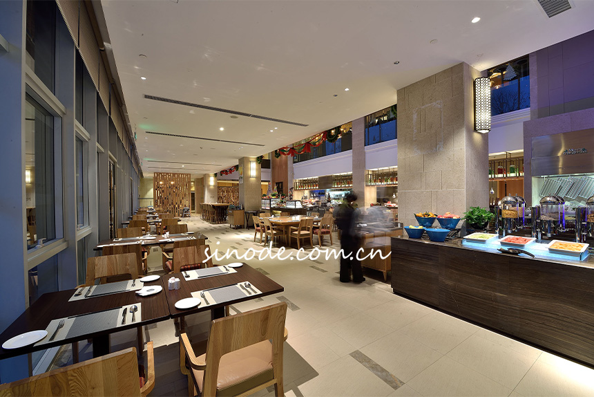 喜来登酒店餐厅基材:采用天然石材/黄铜/胡桃木等材料; 功能特点:①石材质地坚硬,具有很好的防刮伤性和耐磨性;②黄铜抗拉强度高,具有一定的强度和韧性,具有良好的可塑性;③实木质地坚硬,纹理清晰,能够提升空间品质感; |